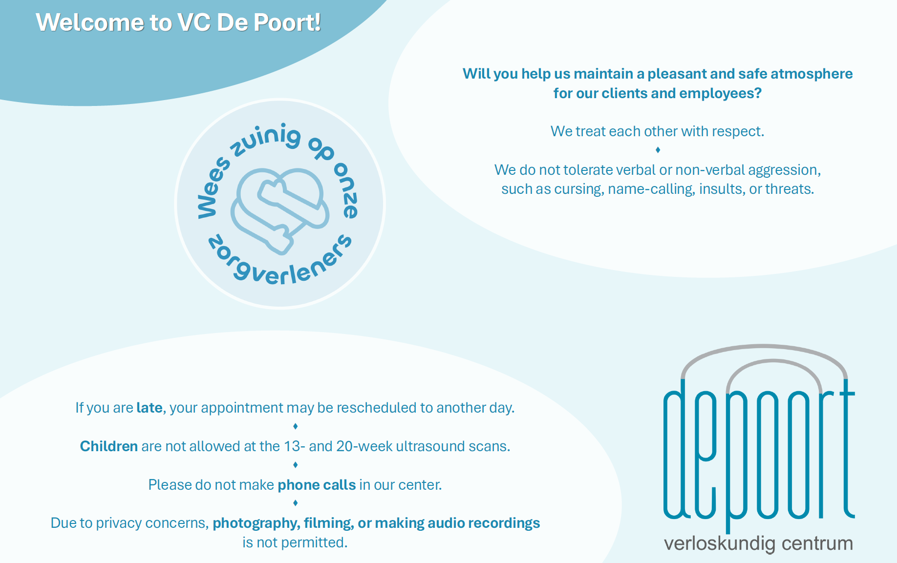 - Bij te laat komen wordt je afspraak mogelijk verzet naar een andere dag.